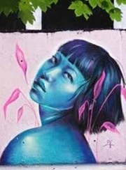 Elle est une touche-à-tout qui aime le processus de la création d’images. Après des études d’arts graphiques à Saint-Luc en Belgique, elle est illustratrice puis graphiste ou encore couturière… Autant de pratiques artistiques qui émanent de sa passion pour les couleurs, les motifs et leurs jeux d’assemblage. C’est parce qu’elle aime varier les techniques qu’elle a aussi apprivoisé la bombe de peinture mais l’acrylique reste son medium privilégié car il lui permet une grande liberté de création de couleurs et d’effets.